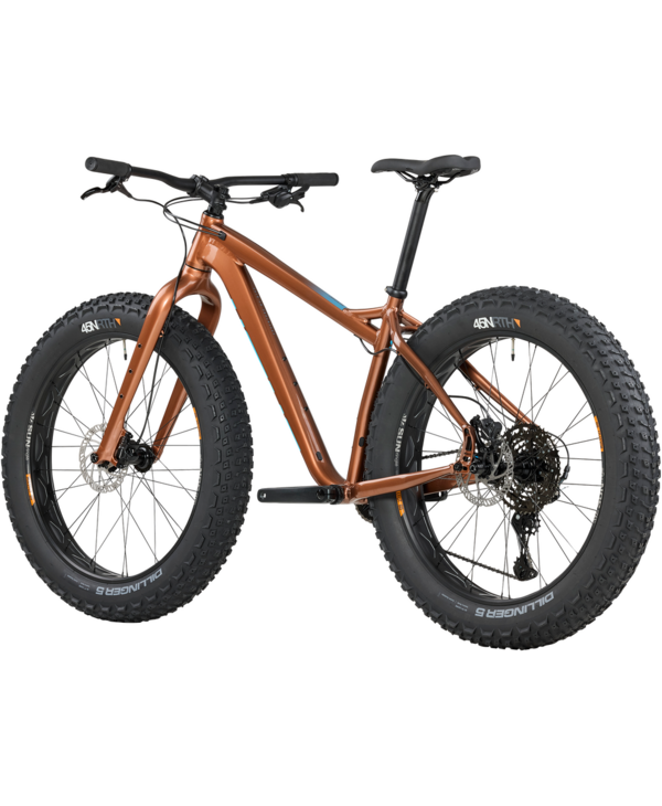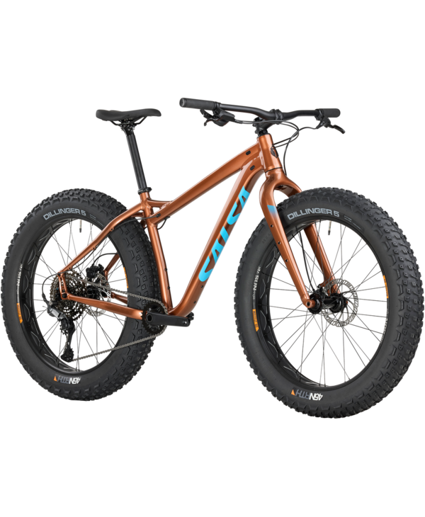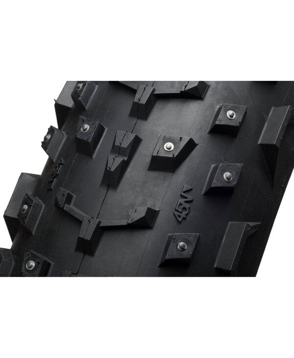 Heyday! CUES 10 is our aluminum fat-tire bike that’s not confined to your typical terrain. Its 26 x 4.6″ tires float over soft snow and sand and put out unmatched traction on roots and rocks. The aluminum frame and fork are designed around geometry that’s stable without feeling overly sluggish. Versatile Alternator dropouts give you drivetrain choices, while plentiful cargo mounts let you load up however you like — racks and panniers, bikepacking bags, or both. Shimano’s CUES 1 x 10 drivetrain is a simple and reliable companion for climbing steep grades or covering lots of ground. Please visit the Salsa website here for detailed specifications. Our bikes are fitted with 45NRTH Dillinger Studded Tires worth $580! A fast traction tire with tightly spaced center tread that rolls quickly, while taller, braced side lugs improve cornering in snowy conditions. Carefully positioned studs allow for railing icy, off-camber singletrack with confidence and control.