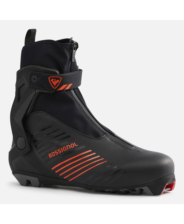 Focus on your form and fitness with top-level performance. The Rossignol X9 Skate ski boots offer responsive, World Cup-inspired control for beginner and intermediate skate skiers. The skate-specific design features 100% recycled materials in the cuff and heel counter for consistent power transfer. They share race-proven technology with our X-ium line for top-level performance. Speed lacing makes for quick tensioning, and an over boot with a central zipper seals out snow. They are insulated for warmth and protect your feet from wind and moisture.