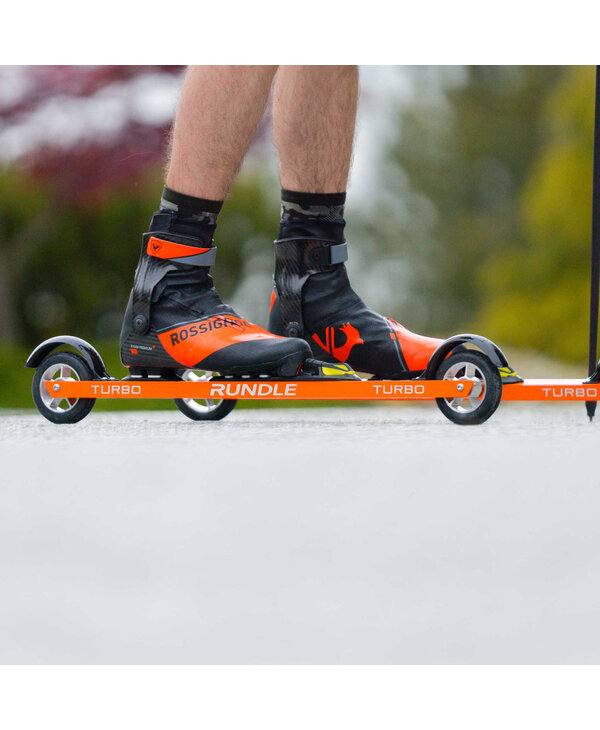 Choose Turbo Skate for a value roller ski that doesn't compromise on quality. Turbo Skate frames are 6061-T6 aircraft grade aluminum and are coated with Tiger Drylac Safety Orange powder coat for high visibility. These roller skis are assembled in Canada with the same durable skate wheels found on our higher priced models.