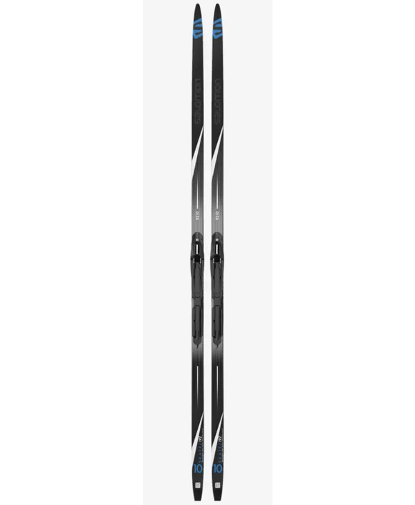 Salomon's RS10 ski set combines the key benefits of the prestigious S/LAB Skate model, but uses the more forgiving and lightweight D-Carbon core for additional ease and stability. With its versatile camber and G5 World Cup base, this ski ensures a fast glide in all conditions. Delivered in pack, just slide the Shift binding on the plate and go!