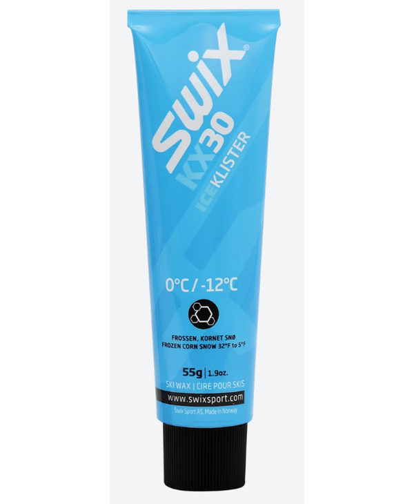 KX is a new line of Klister from Swix. The new formulas build up logically from hard to soft, from cold corn snow to extreme wet corn snow. The higher the number, the softer the wax.