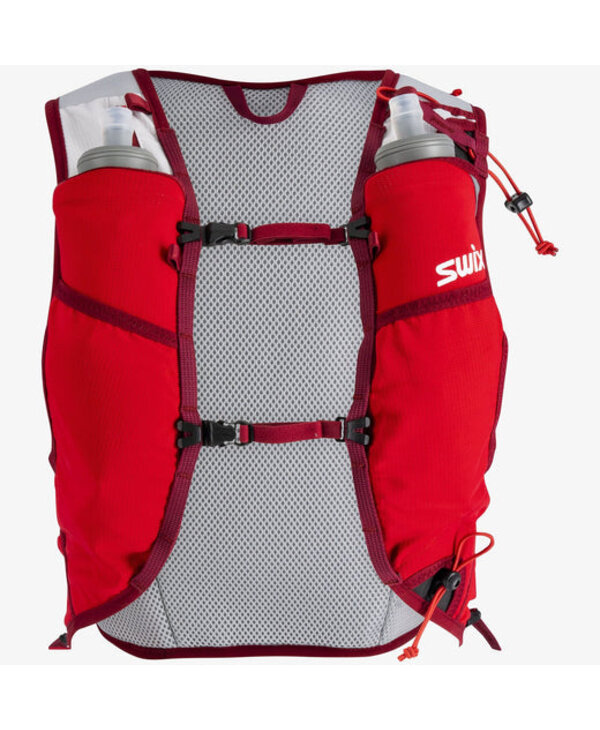 The Swix Pace 2L Hydration Vest is built for fast trail runs and minimal gear adventures. With a 2-liter capacity and two 500 ml soft flasks included, hydration is always at hand. Multiple front pockets make it easy to access gels, snacks, and essentials without breaking stride. Lightweight, secure, and comfortable, this vest moves with your body – so you can stay focused on the trail ahead. For runners who value speed, function, and freedom.